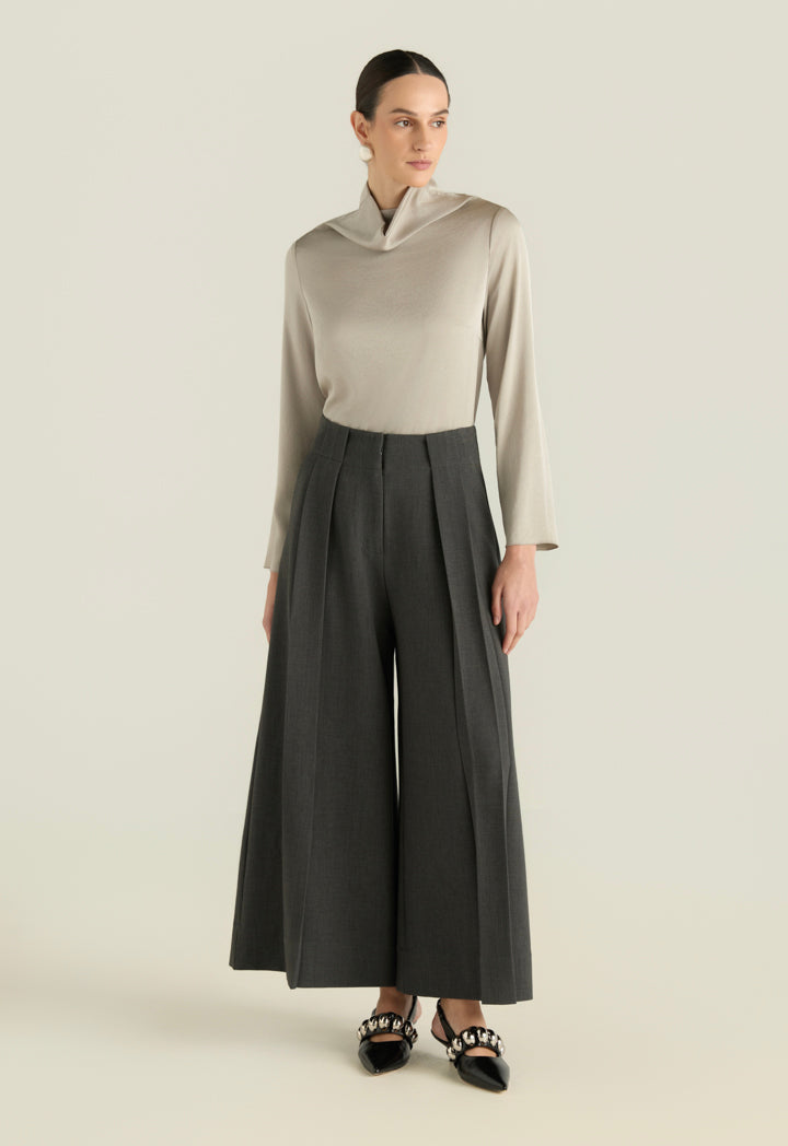Palazzo Trousers With Wide Pleats