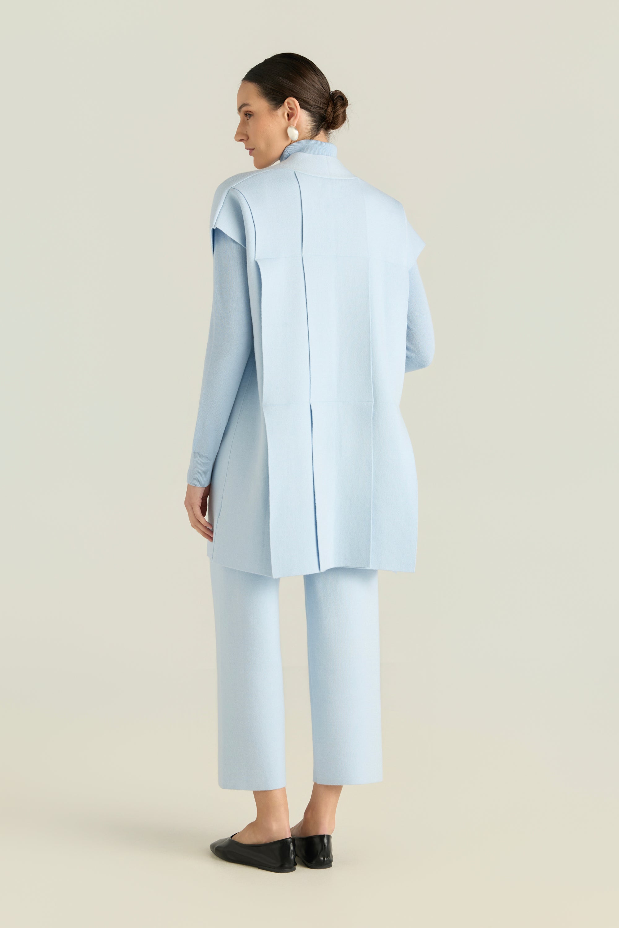 Cardigan Featuring Architectural Back Seams And Refined Slit Details.