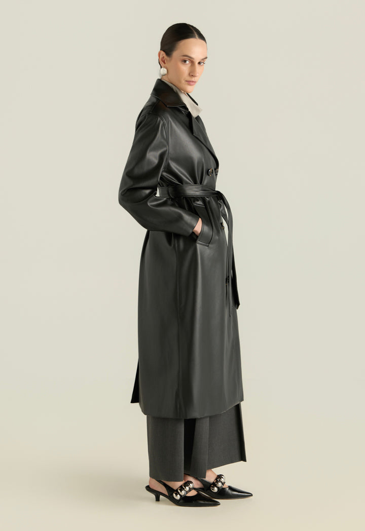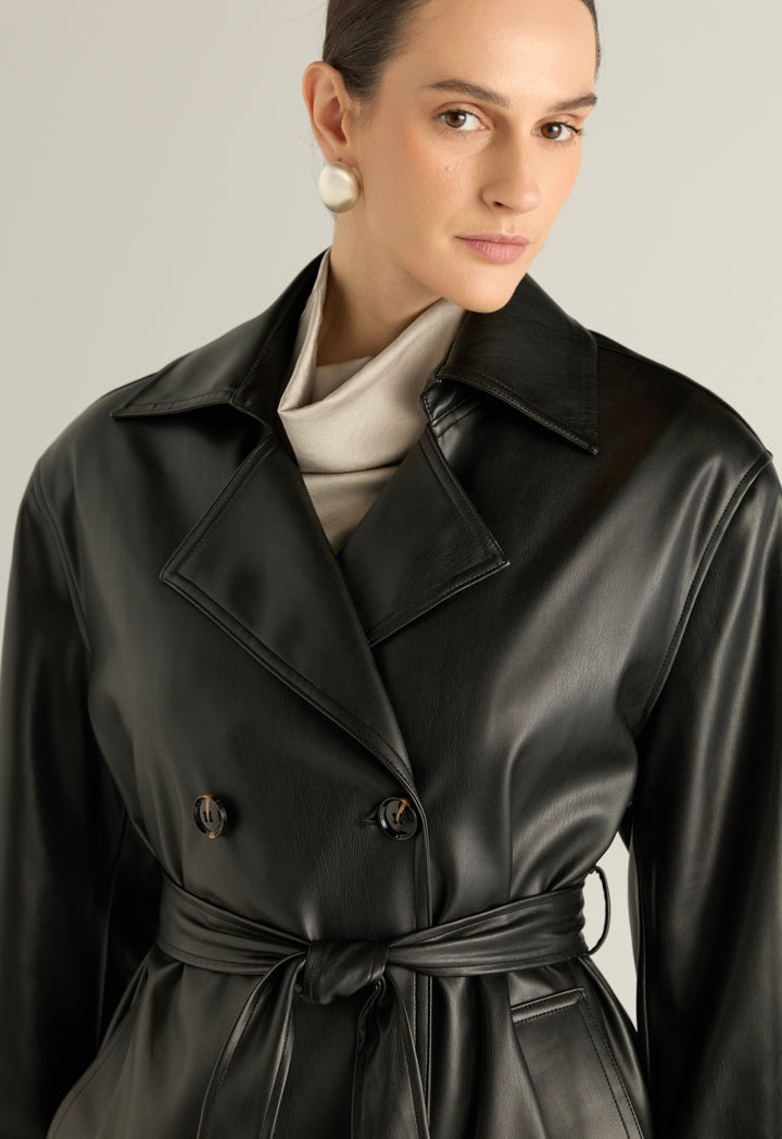 Design : Solid, Pu Leather, Belt, Side Pockets, Back Slit, Attached Lining