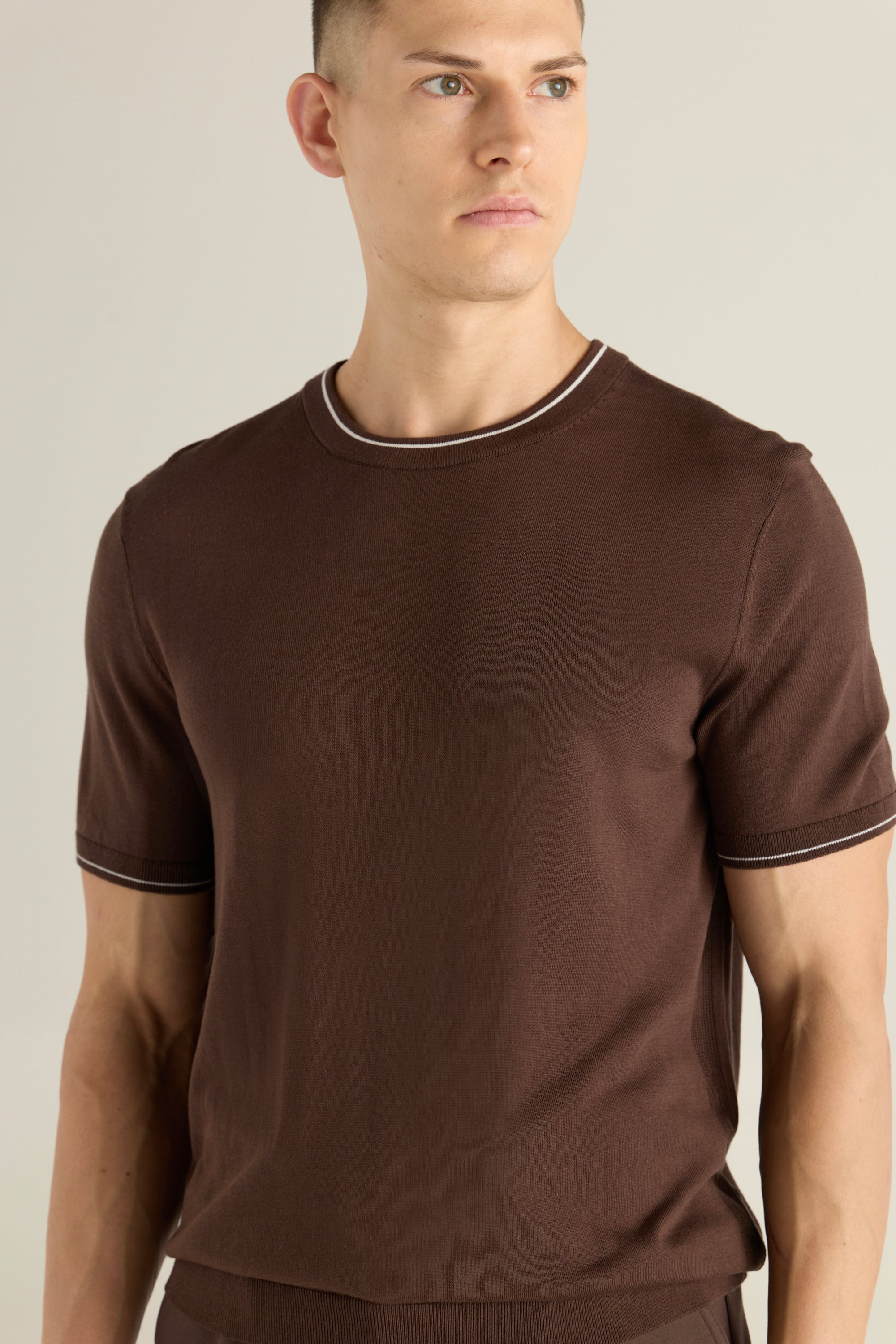 Contrast Rings At The Collar-Soft Knit That Sharpens The Simple.