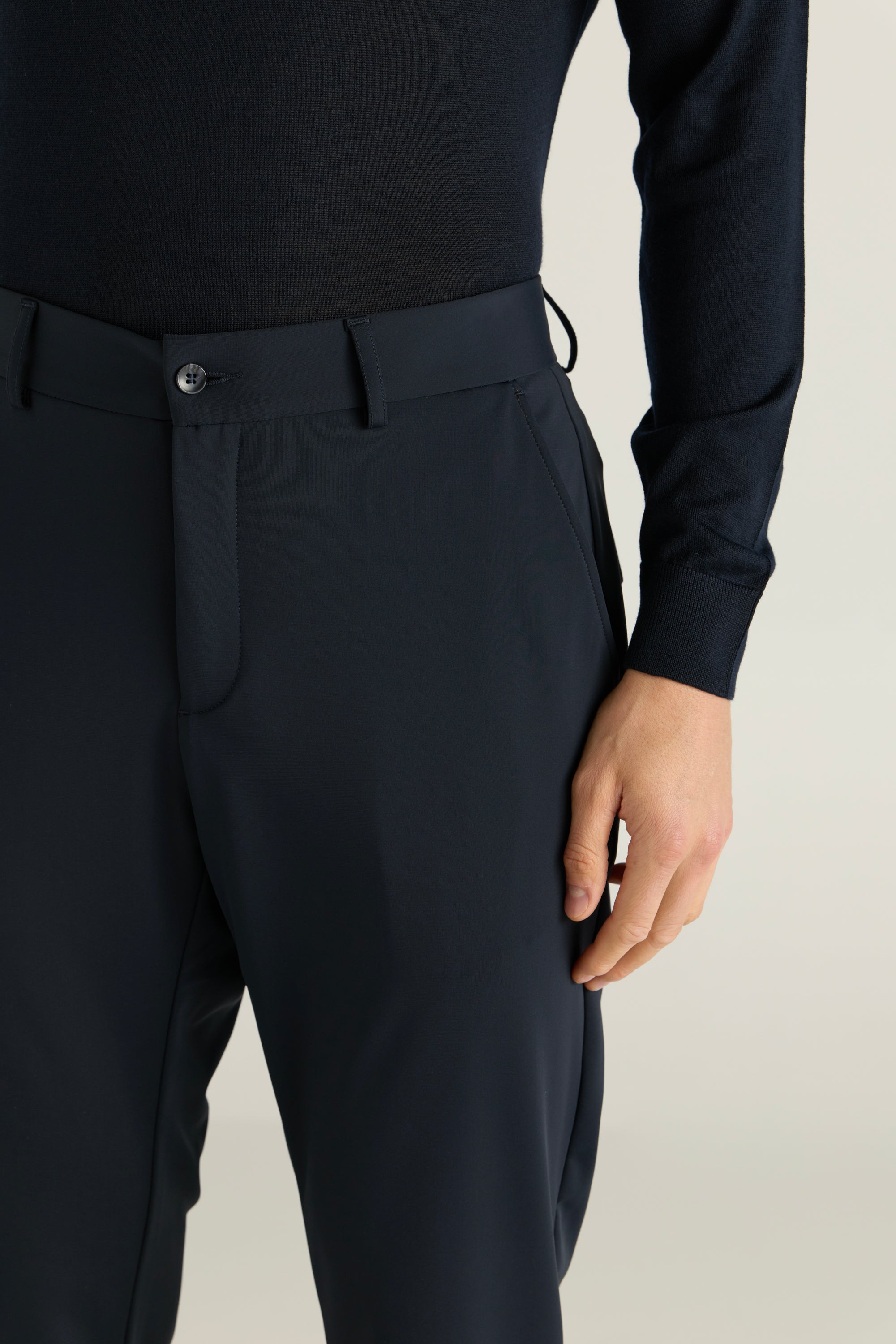 Minimal Waistband, Side Pockets And Flexible Stretch With A Trim Trapper For Easy All Day Movement.