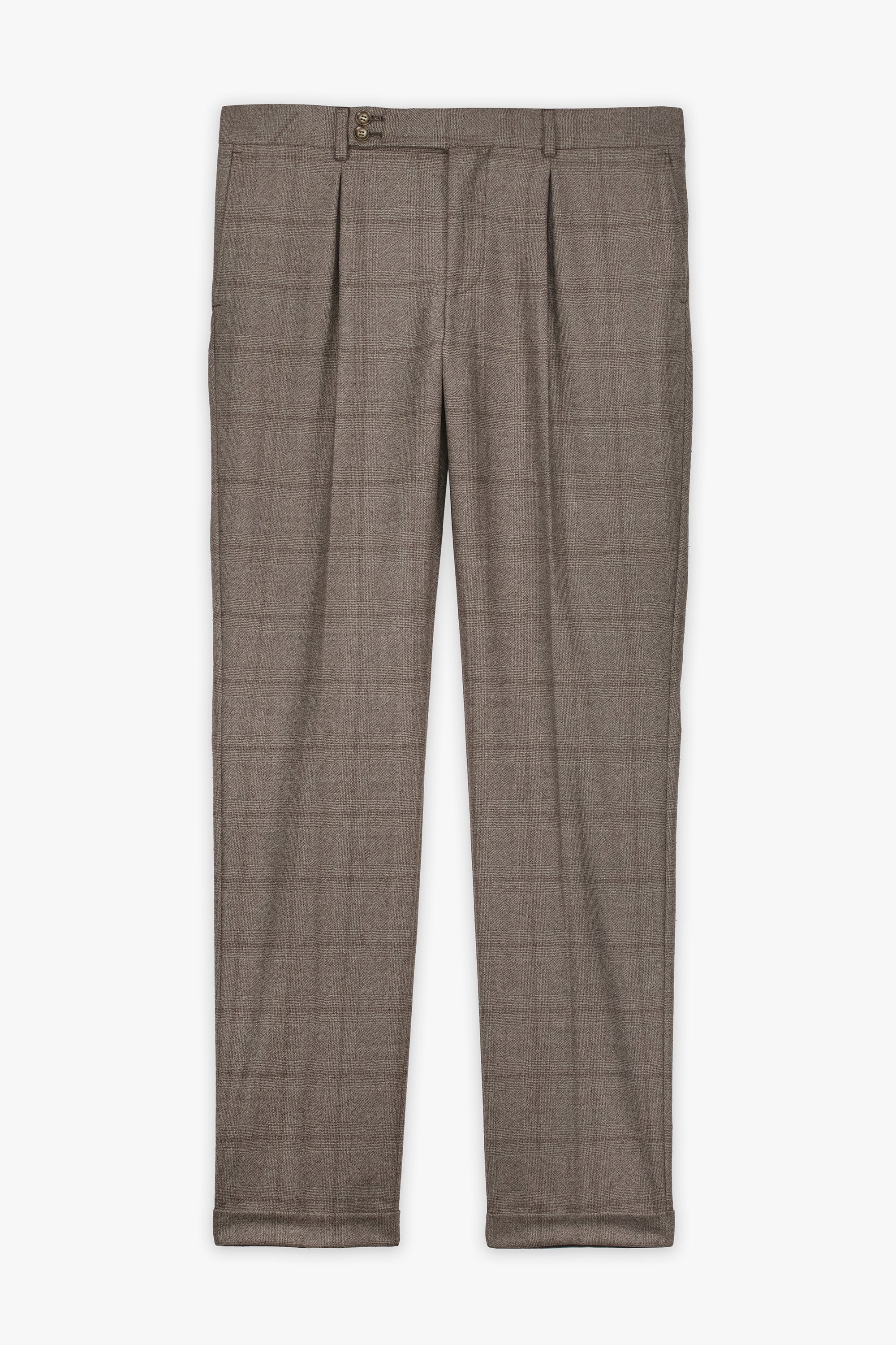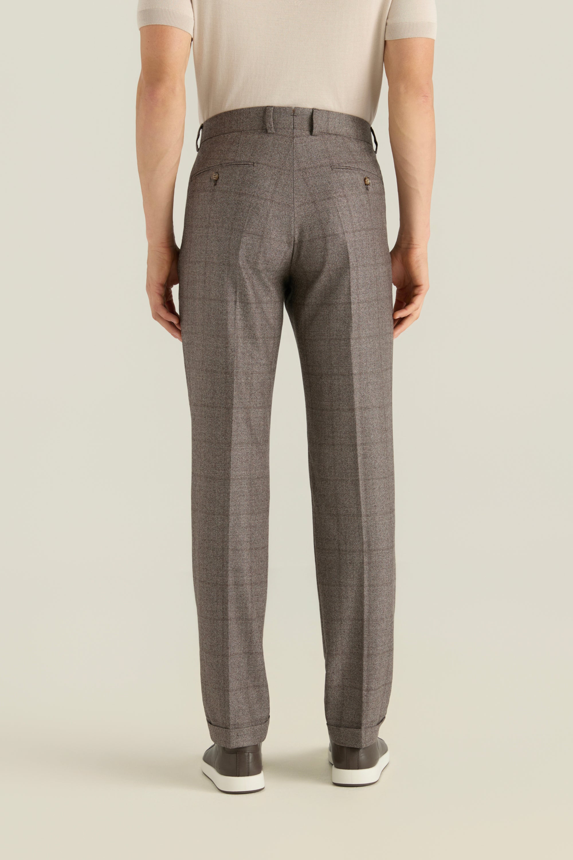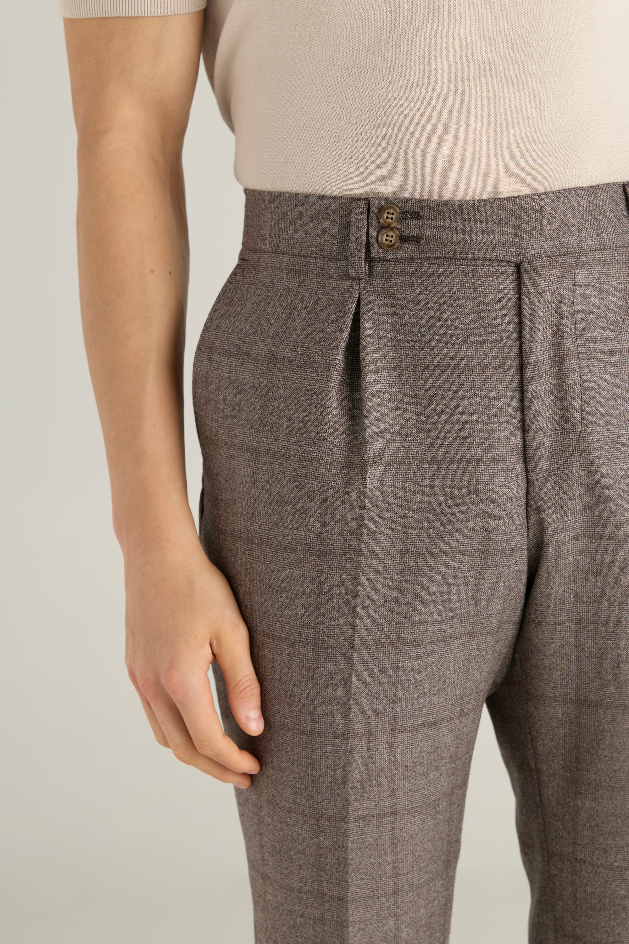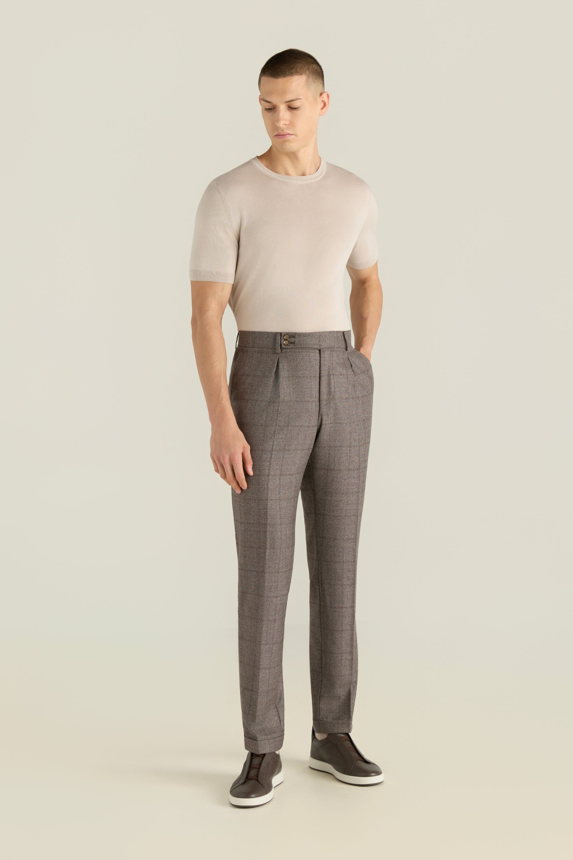 Fine Check Pure Wool, Single Front Pleat, Zip With Double Buttons-Clean Structure With Relaxed Straight Leg.