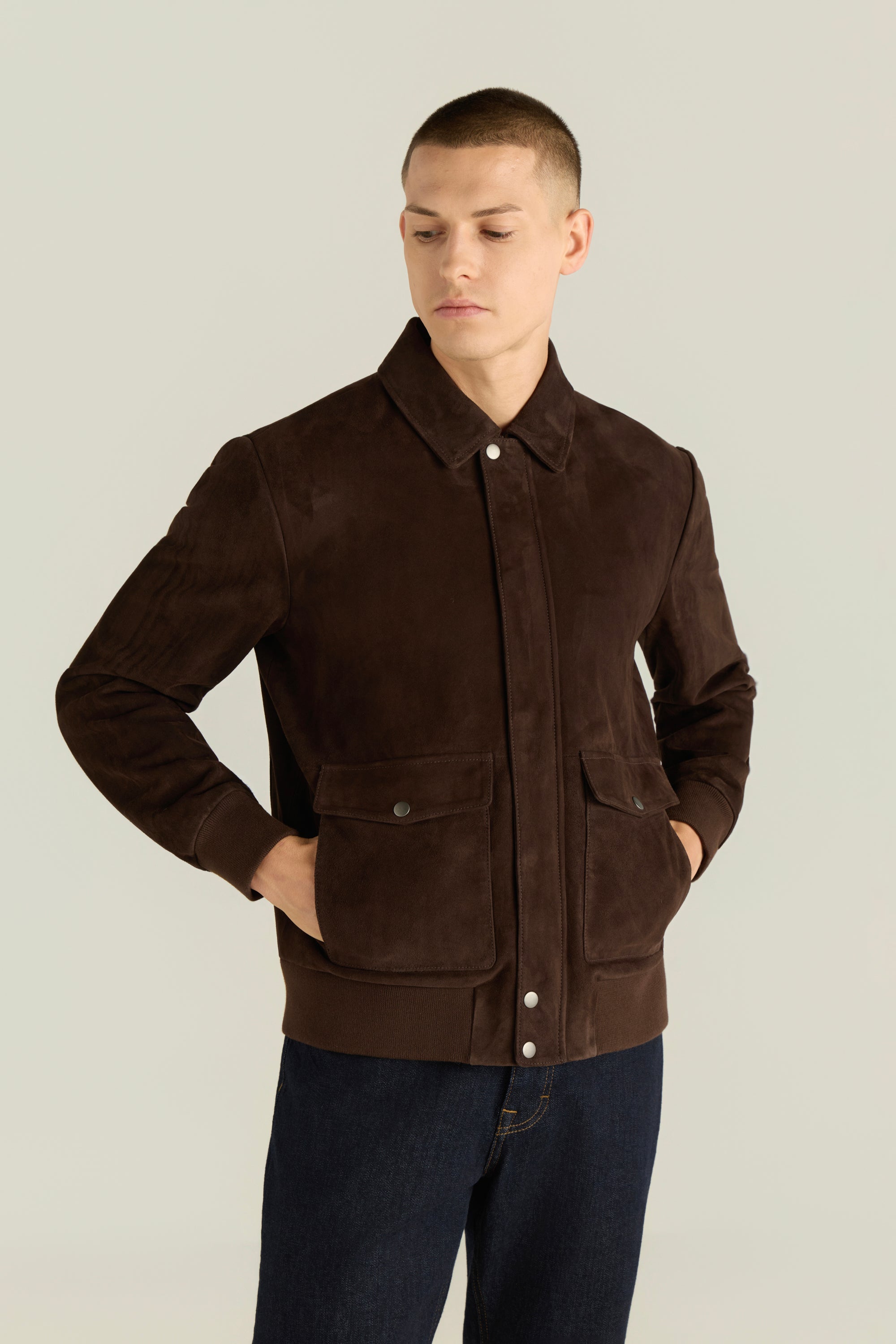 Design : Solid, Suede, Front Pockets, Ribbed Cuffs And Hem, Attached Lining