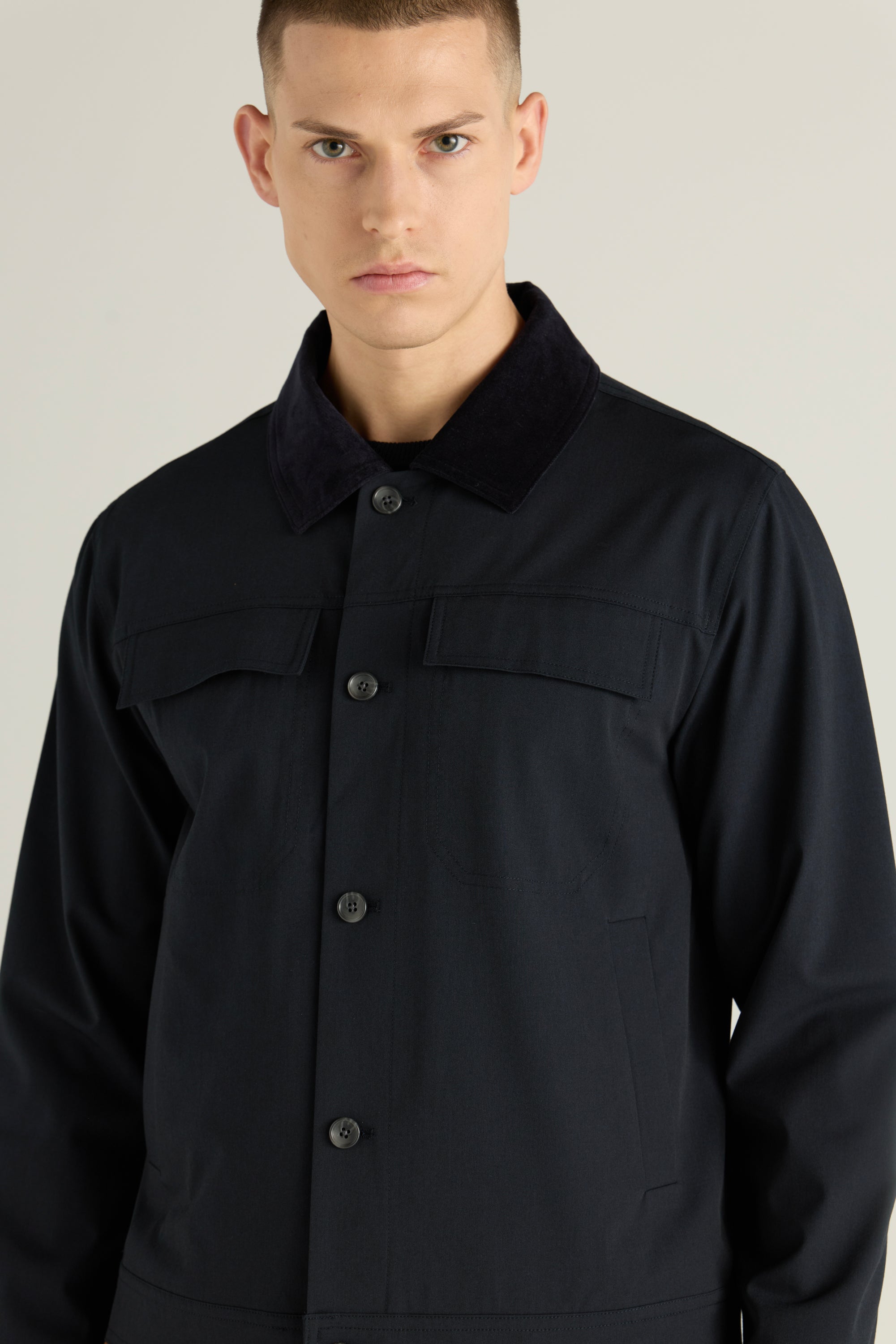 Men'S Shirt-Jacket With Velvet Collar
