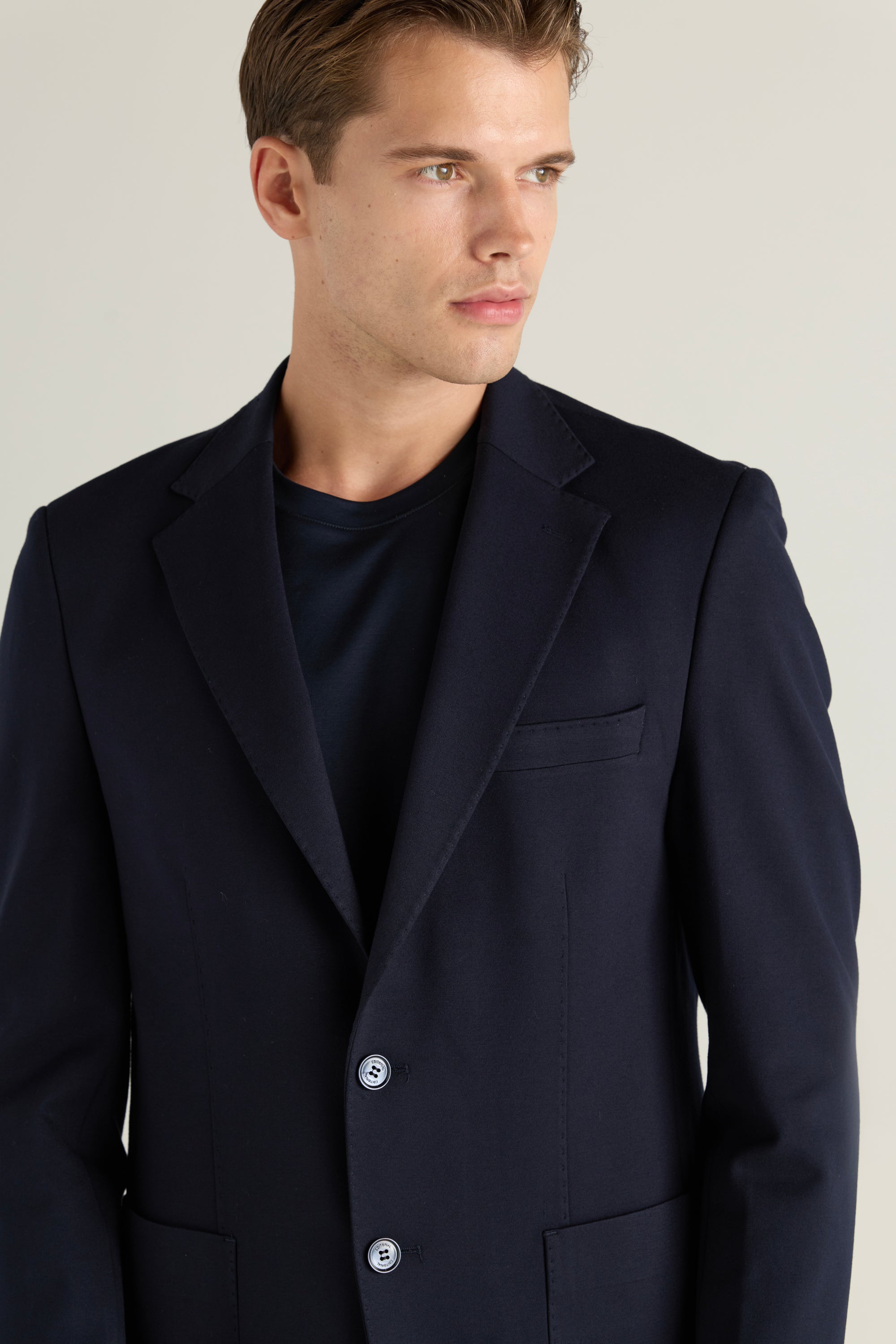 A Tailored Blazer With A Sharp Notch Lapel And A Clean Two Button Front For A Versatile, Polished Finish.