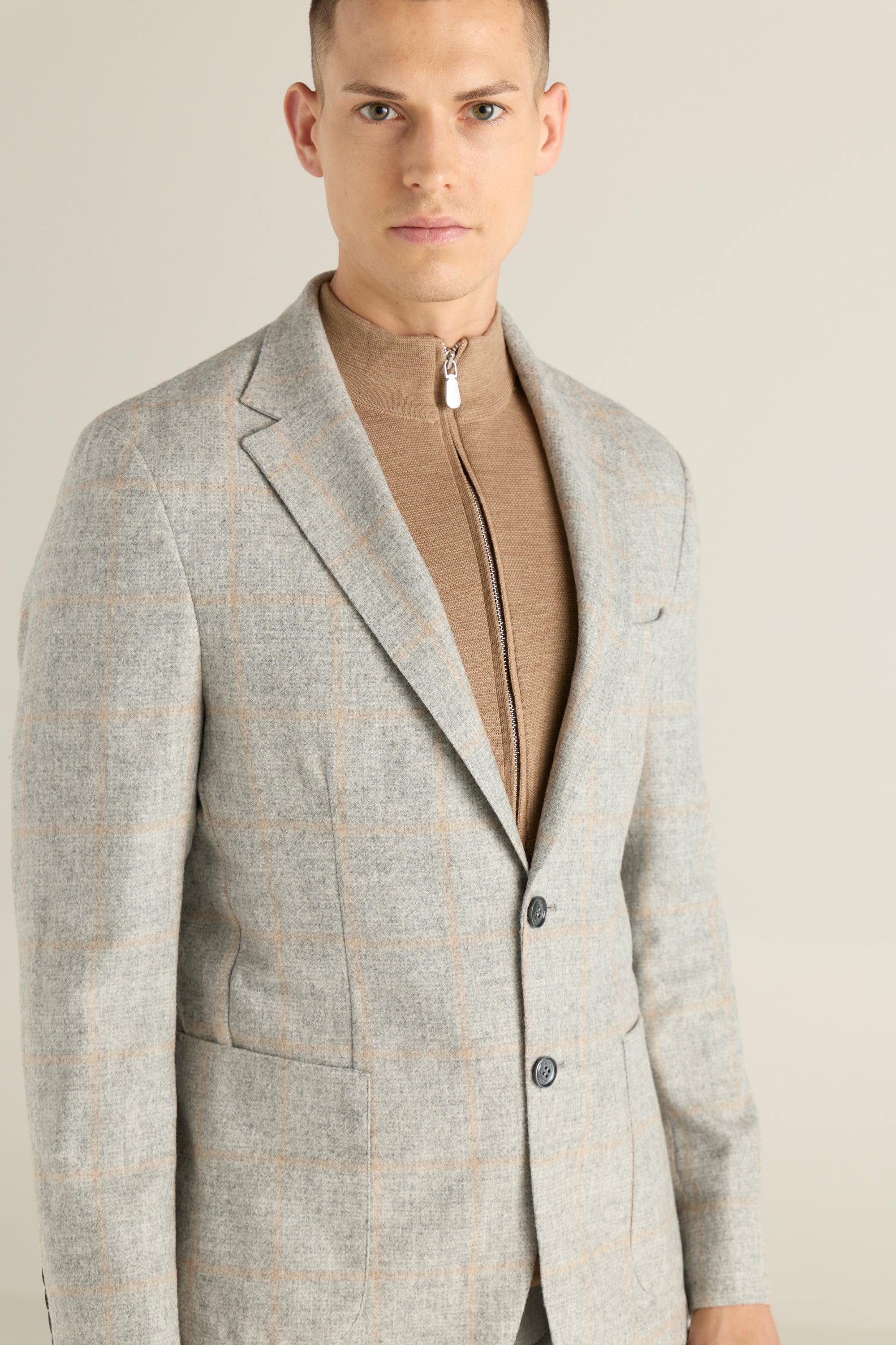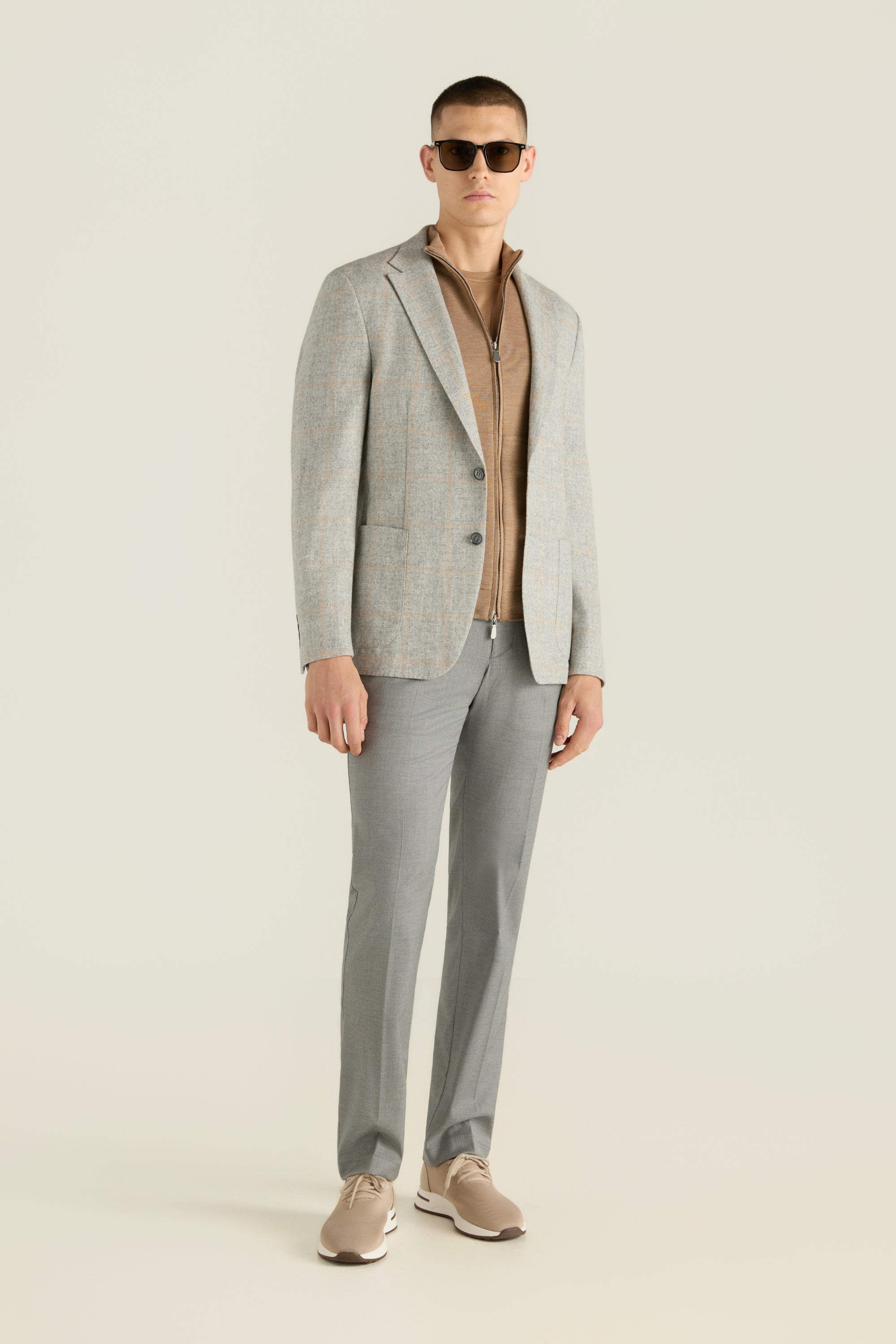 Notched Lapels, Two Button Front And Patch Pockets Deliver Modern Tailoring.