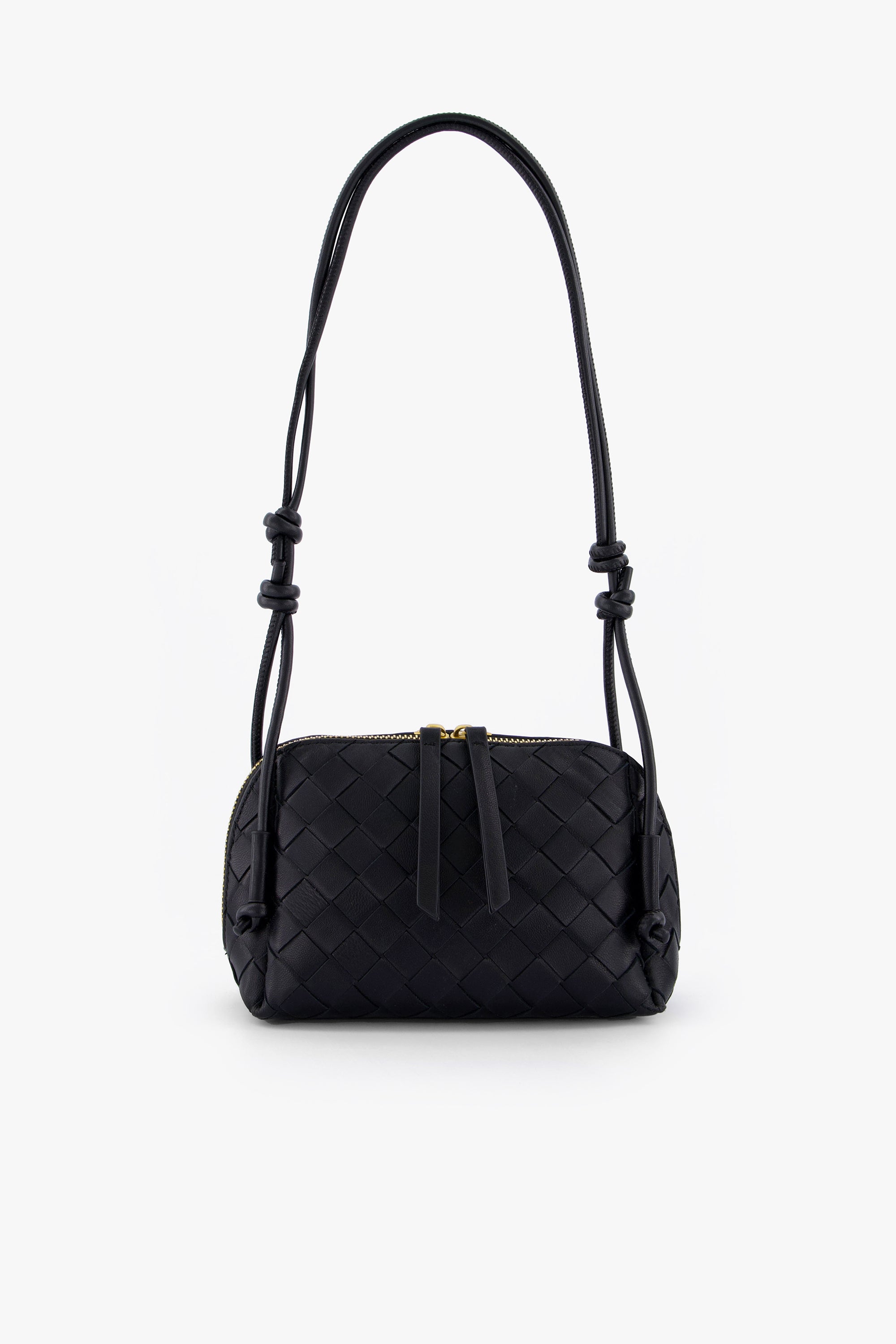 A Mini Solid Crossbody Bag That Features A Unique Intricate Design.