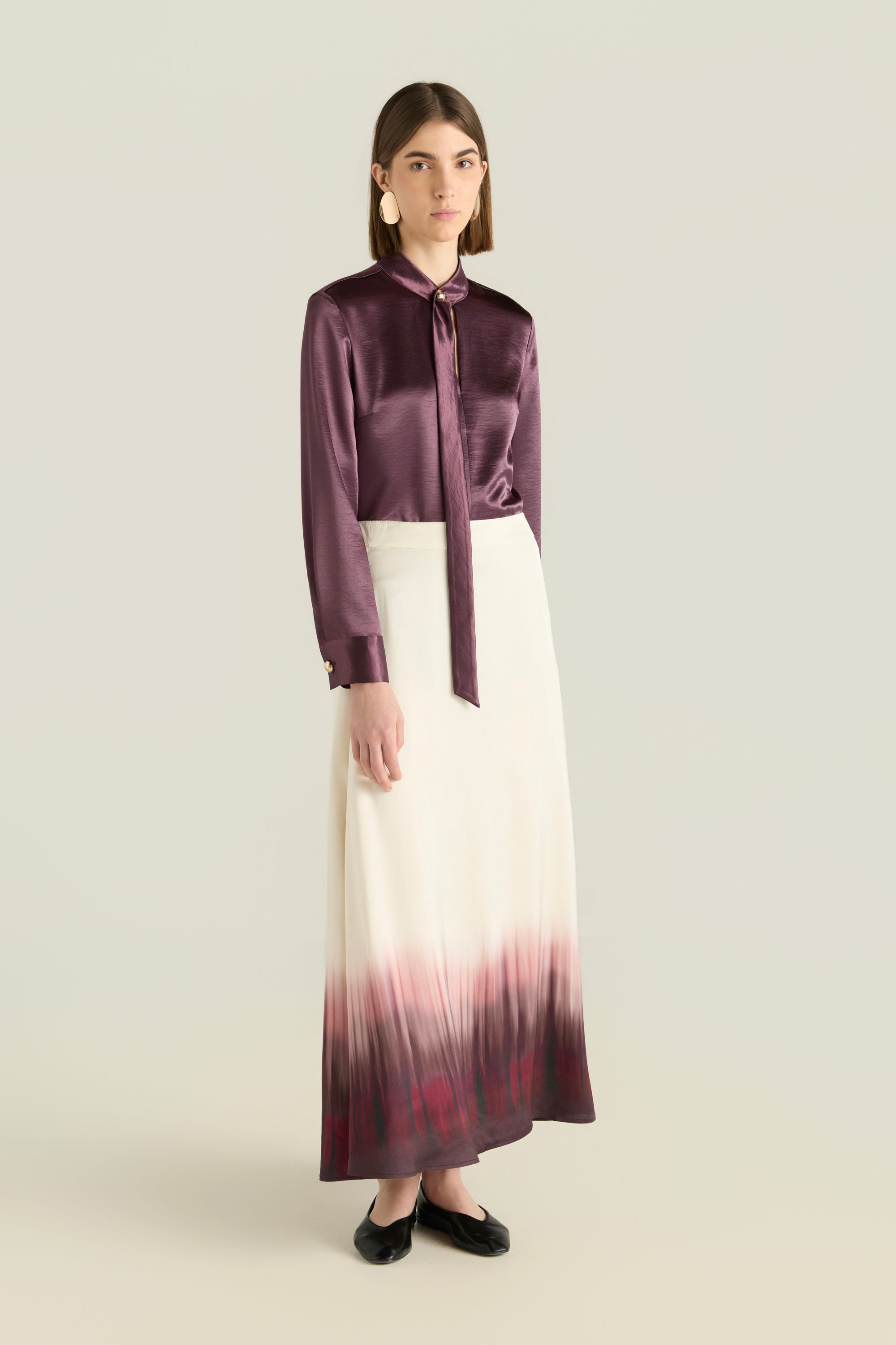 A Fluid Satin Drape Meets An Ombre Hem That Fades From Cream Into Deep Berry For An Artful Finish.