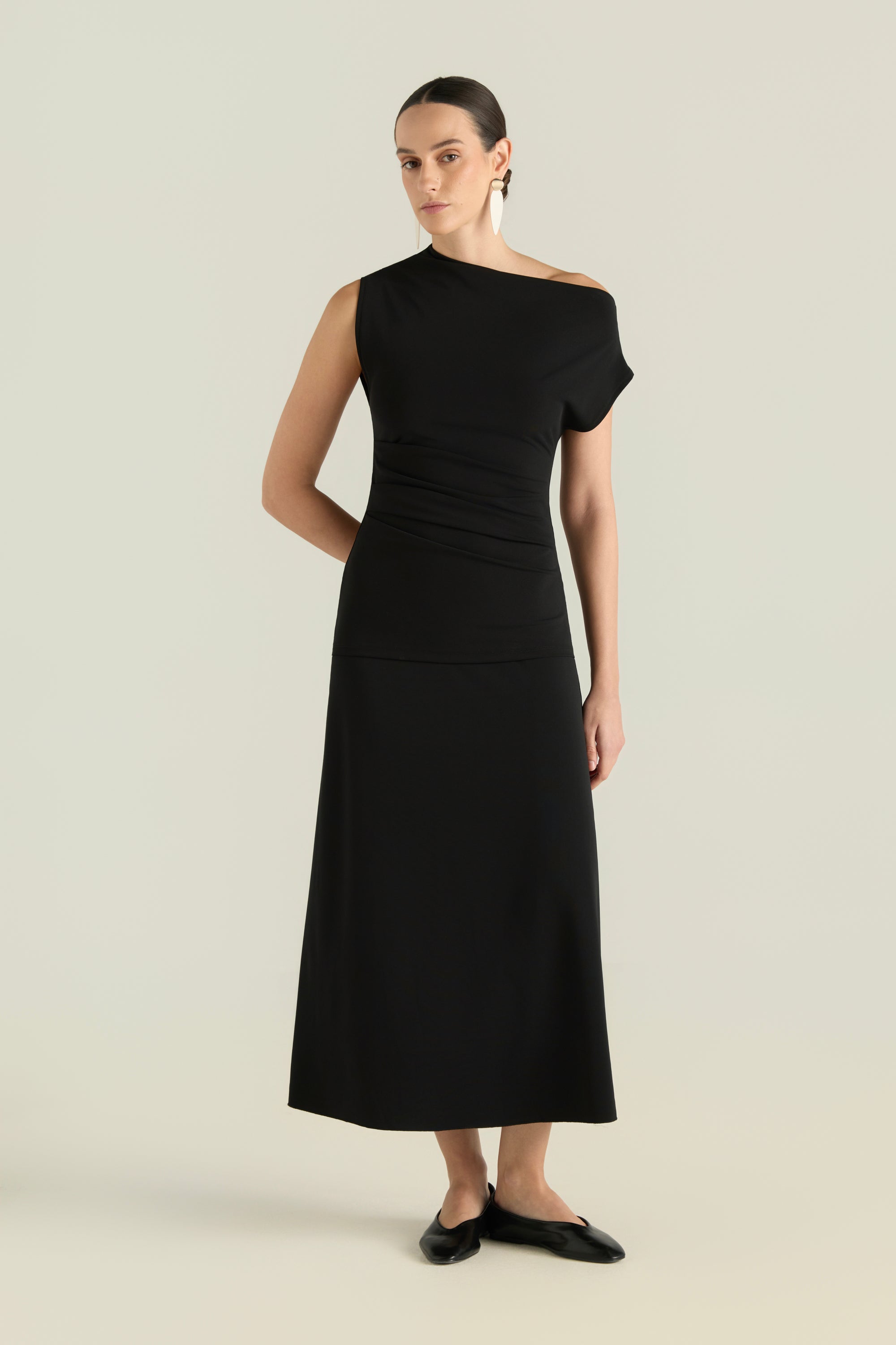 Statement Drape Meets Sleek Stretch-Pair, Layer, Go.