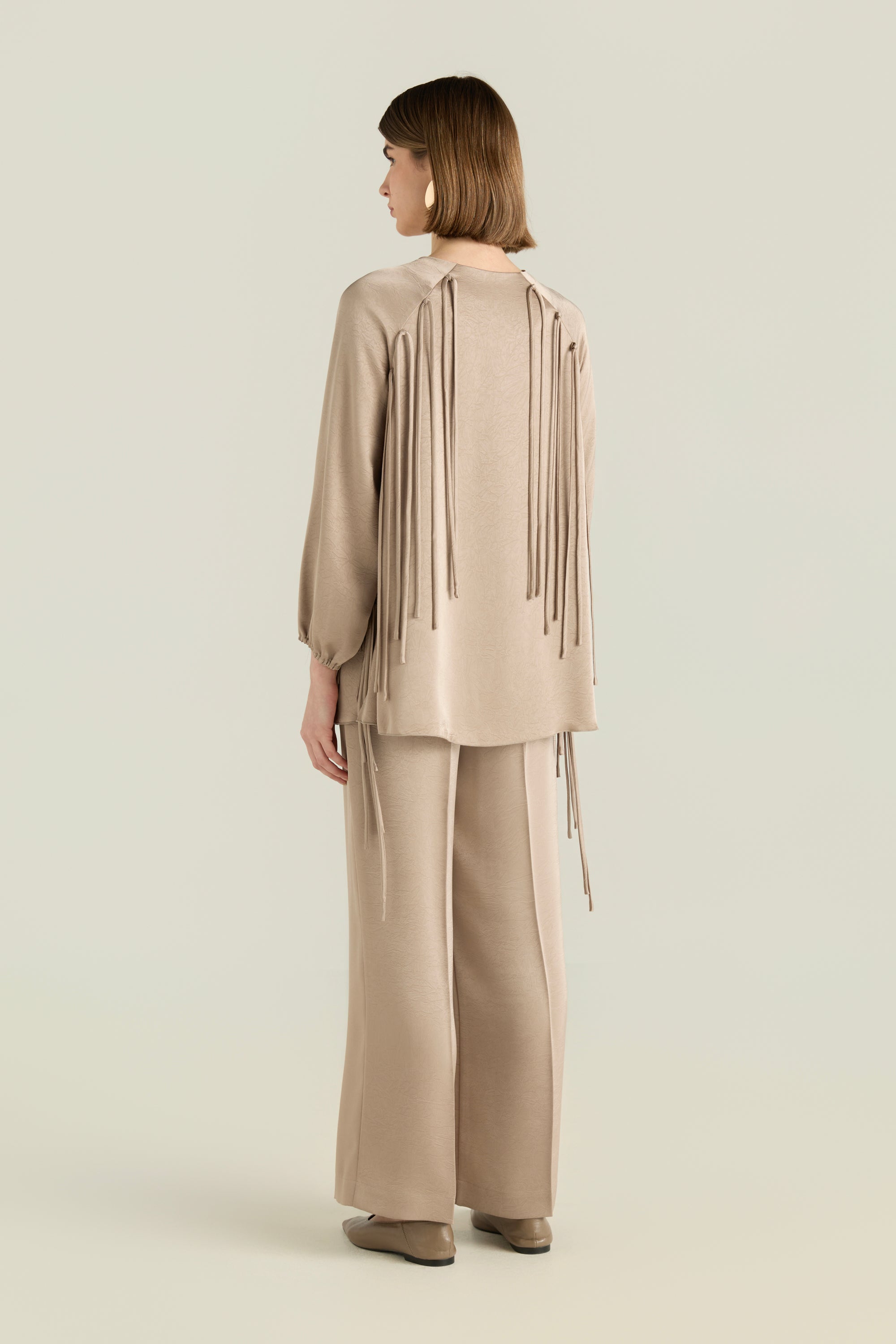 Elegant Blouse With Subtle Tie Accents Perfect For A Sophisticated And Versatile Look .
